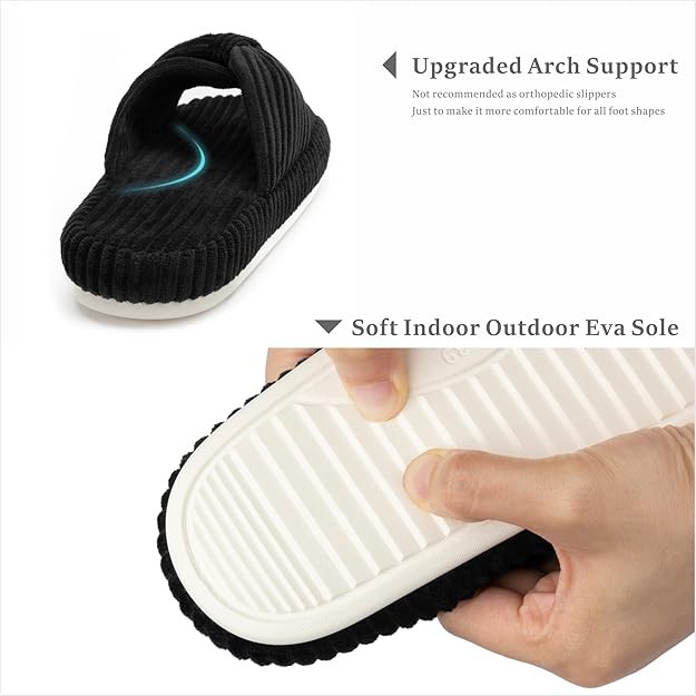 【Our Original Design Slippers】The corduroy fabric of these slippers is fine and soft, skin friendly, warm, and non-slip underfoot. Corduroy fabric is combined with bowknot elements to make cross band slippers. The design is unique, classic and simple, with retro and elegant temperament, bright and stylish colors, suitable for all ages and all clothes.