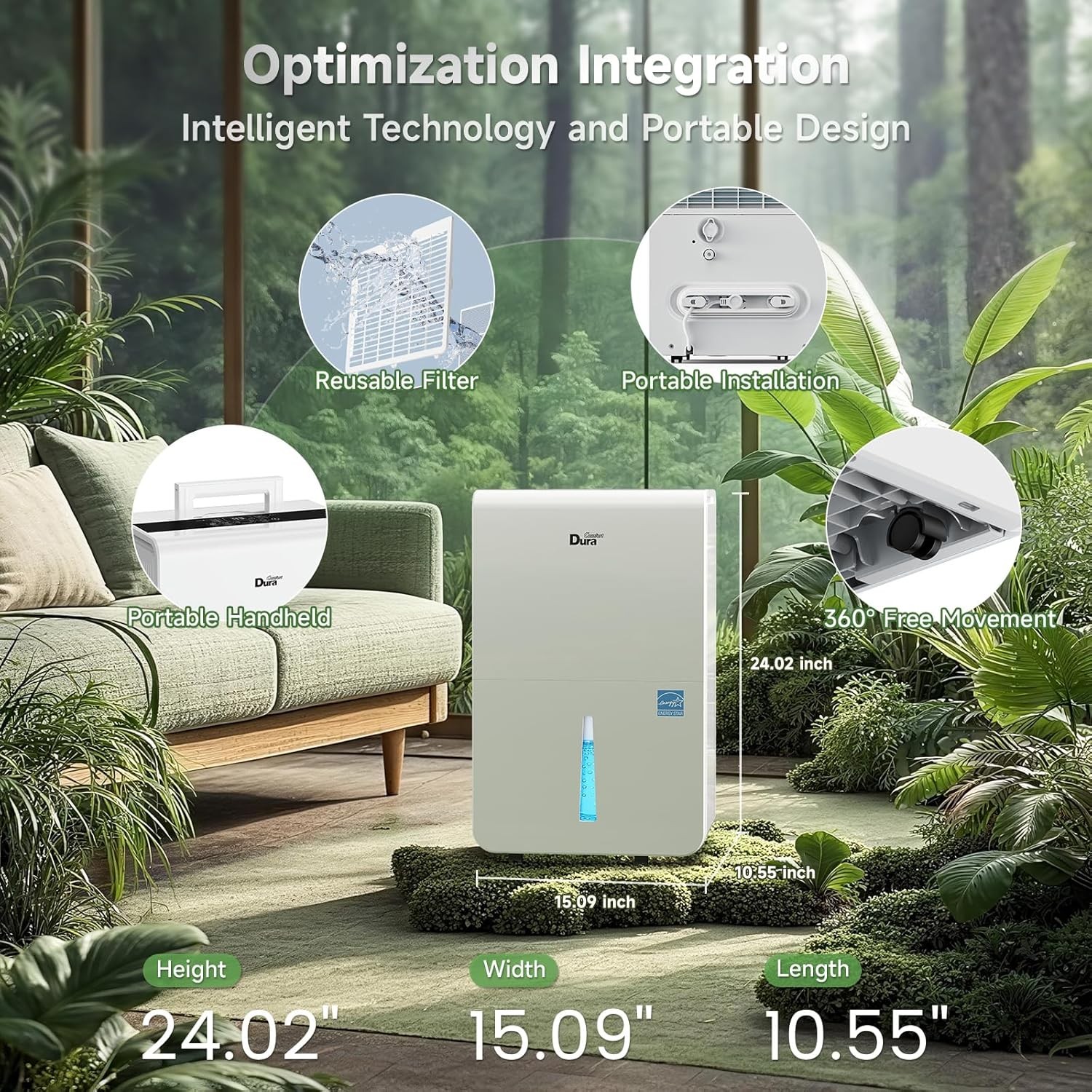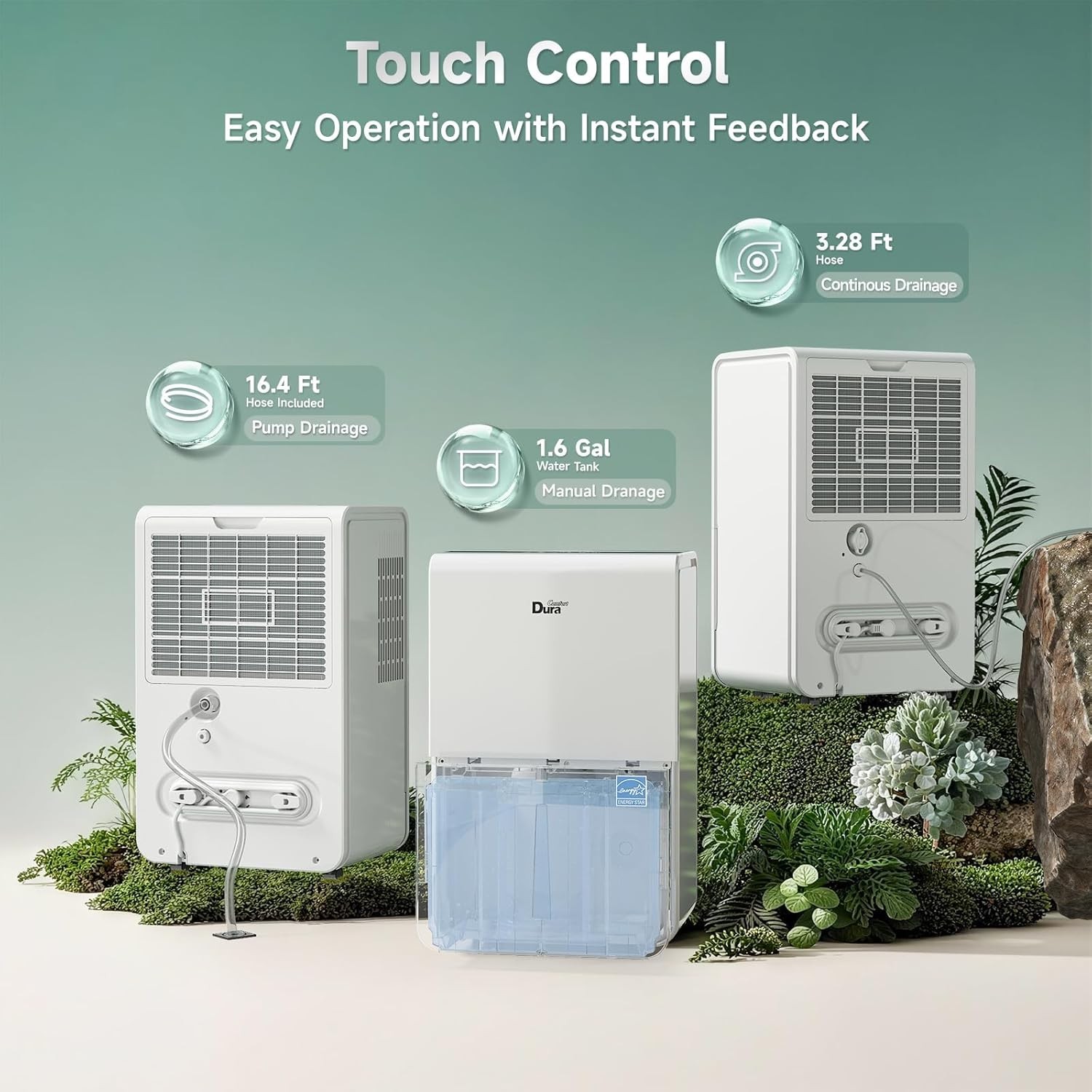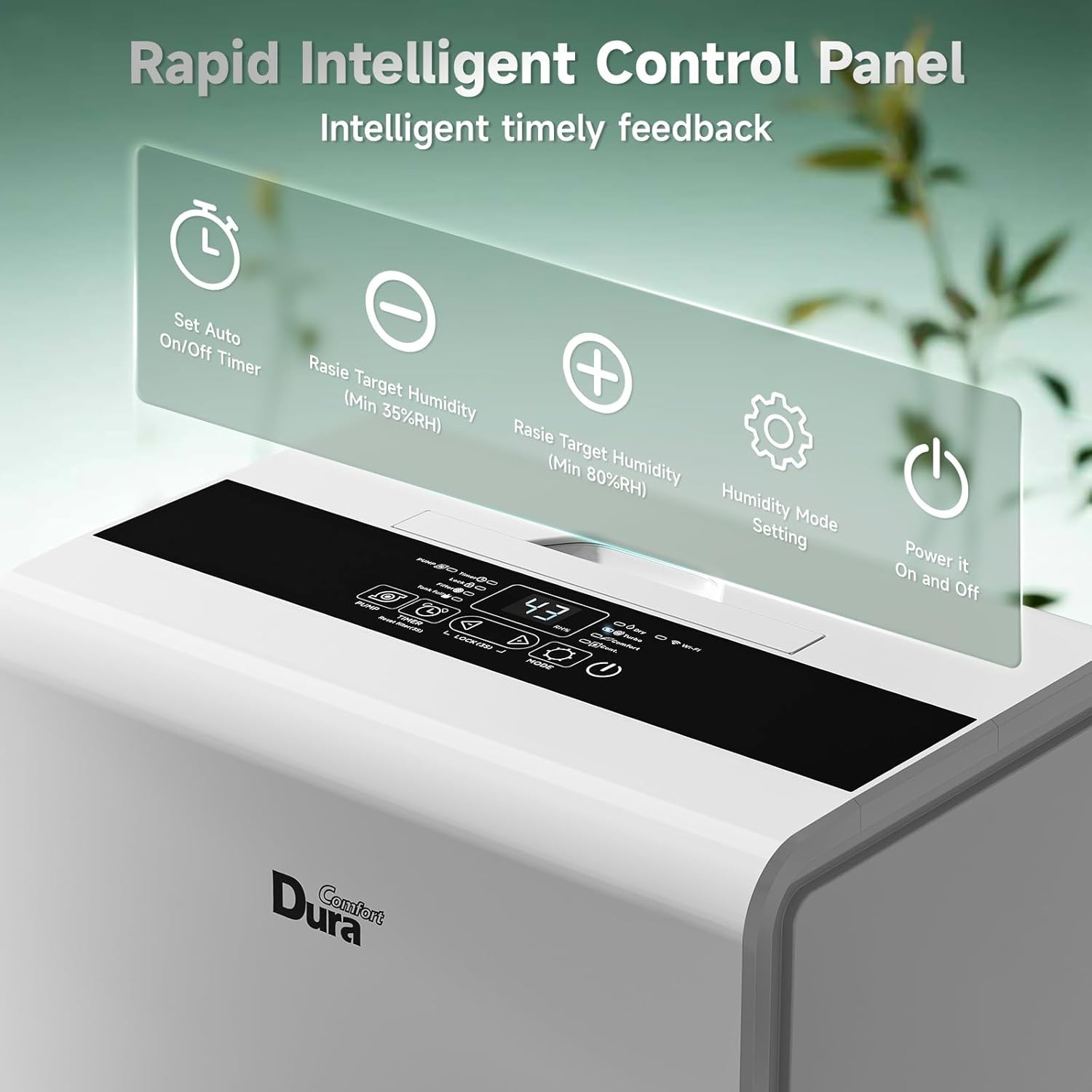 WiFi Smart Control —— Use the DuraComfort app to adjust humidity, fan speed, and set timers from anywhere.