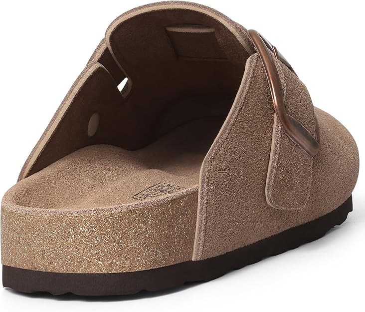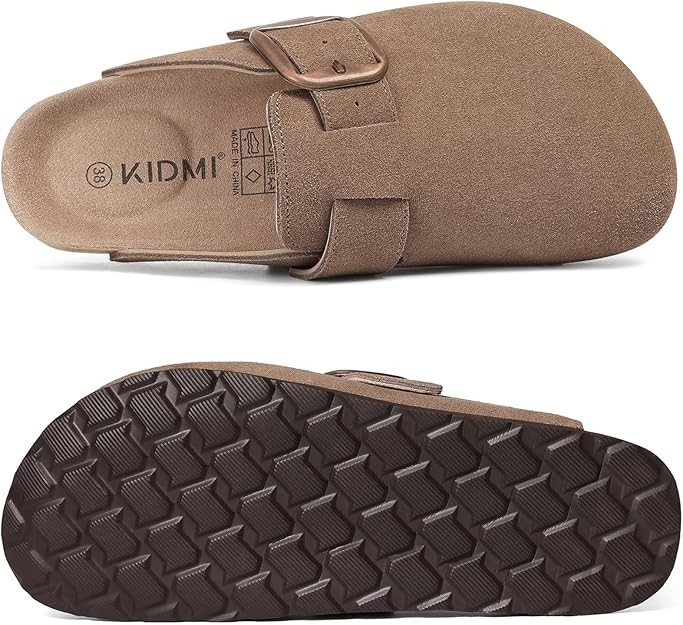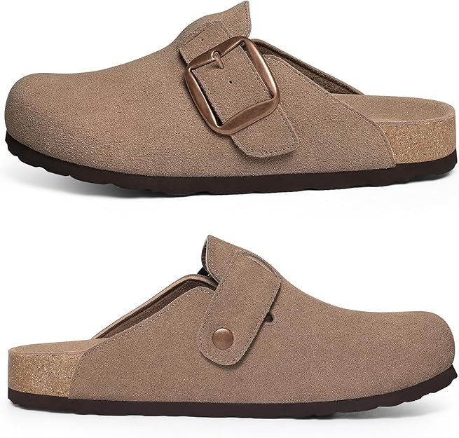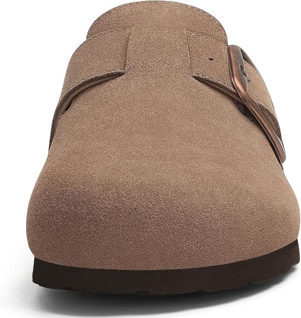 KIDMI Genuine Suede Clogs for Women Memory Foam Cork Footbed Potato Shoes Slip On Leather Mules with Big Buckle