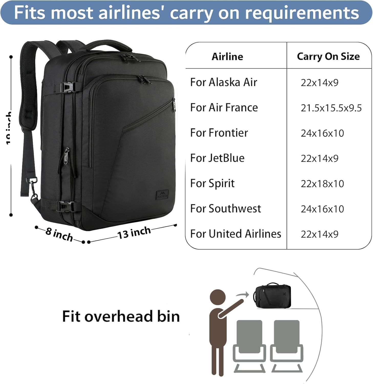 Expandable & Large Capacity: This extra large travel backpack with expandable feature offers you more packing capacity. Unzipping to get 45L storage then can easily hold packing cubes, make-up bag, outfits, camera bag and gear, etc. It fits overhead bin while on state of standard carry on size, is suitable for men, women, weekend traveler, or occasional vacationer. This versatile luggage backpack also meets airline carry-on requirements for airlines such as Easy Jet, Spirit, Jet Blue