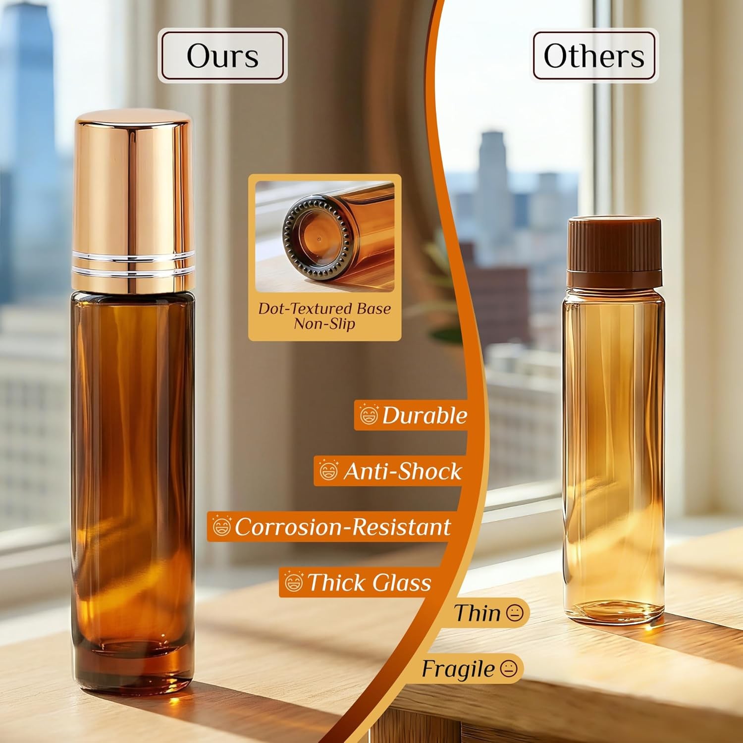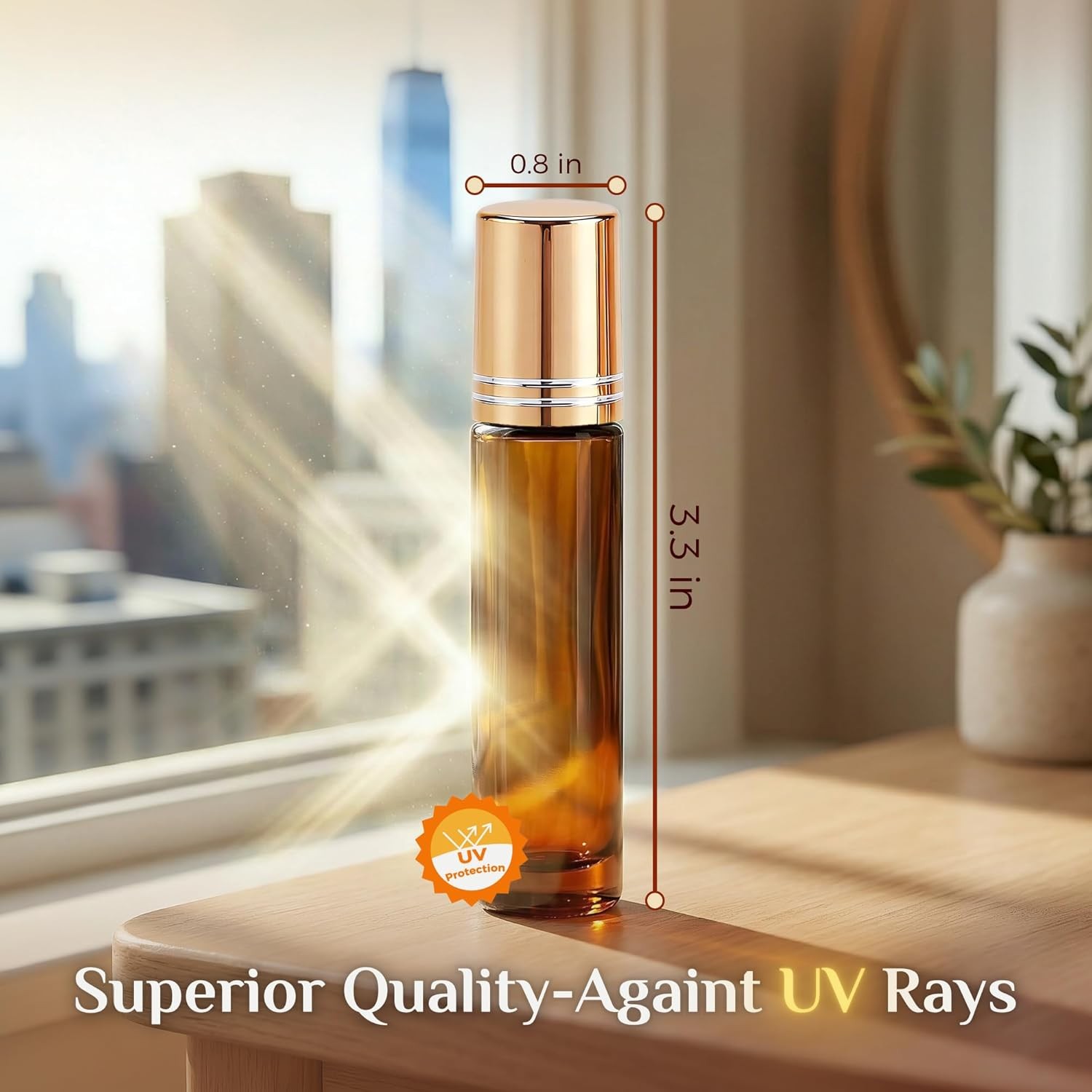 UV Protection: The roller bottles for essential oils are made of corrosion-resistant thick amber glass, protecting the oil against harmful UV rays