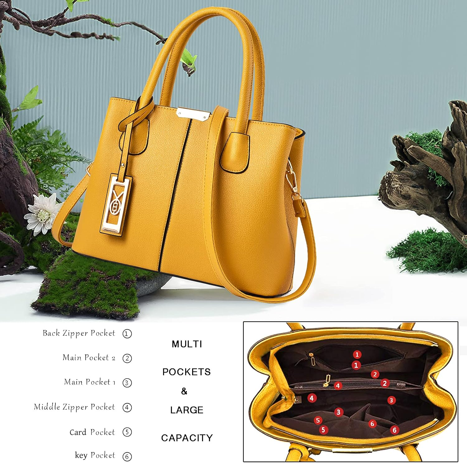 POCKETS: 1 Exterior Back Zipper Pocket,2 Interior Zipper Pocket and 2 Front Wall Open Top Item Pockets