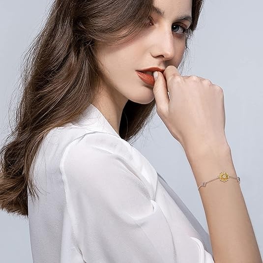 Bracelets Feature : 925 Sterling silver bracelet with butterfly and sunflower, its contrast between the silver and gold looks much more stunning, a beautiful silver bracelet and comfortable wearing