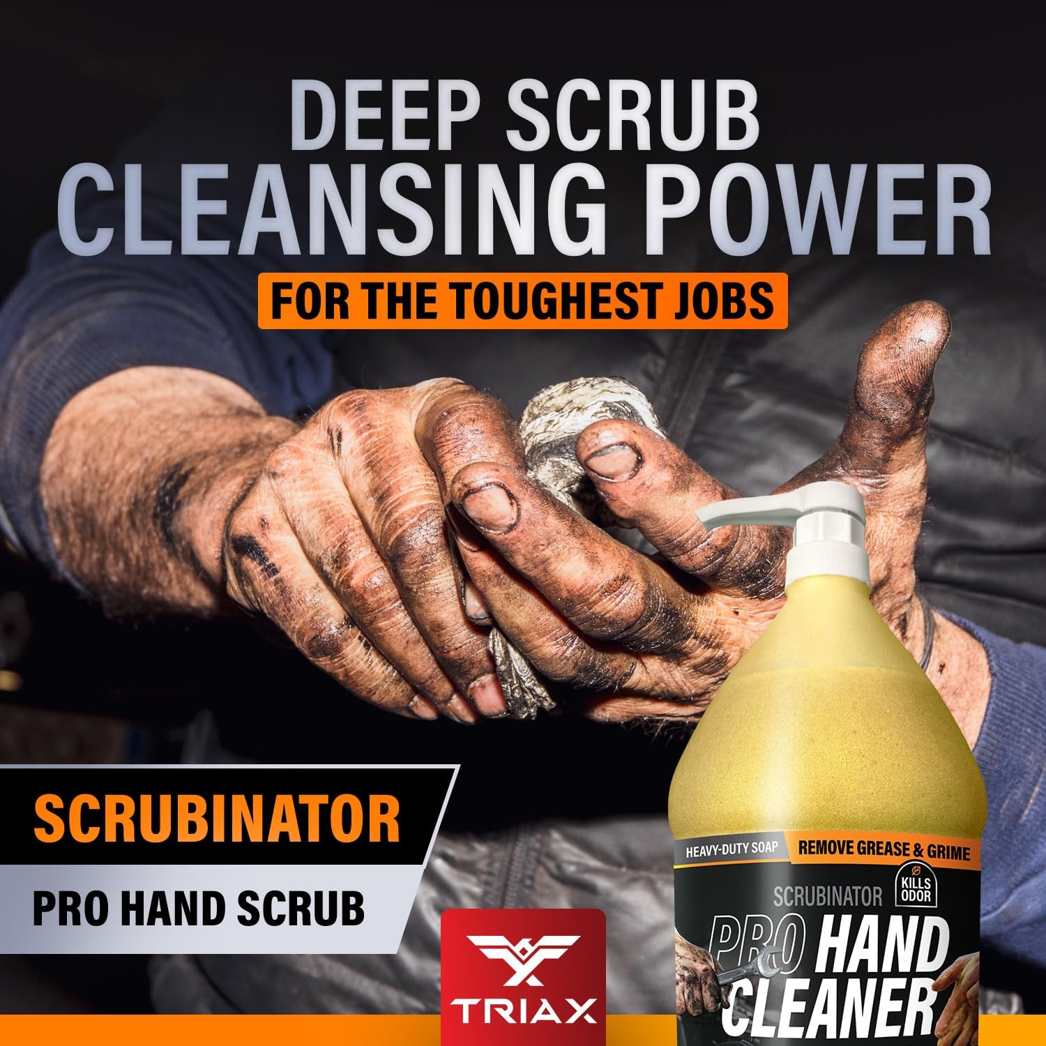 TRIAX Scrubinator - Heavy Duty Hand Scrub and Cleaner - Removes Tough Grease, Dirt, Grime, and Odors - No Toxic Solvents or Harsh Chemicals - Moisturizers to Protect Skin (16 Ounce)