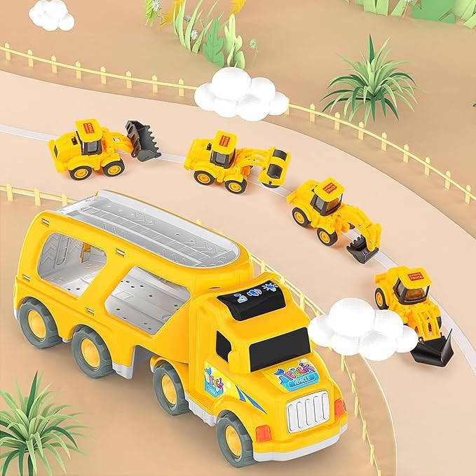 Veslier Construction Truck Toys for Boys Girls Age 3 4 5 6 Years Old,Carrier Transport Trucks for Kids 3-4 3-5 Year Old,Christmas Birthday Gift Toddler Toys.